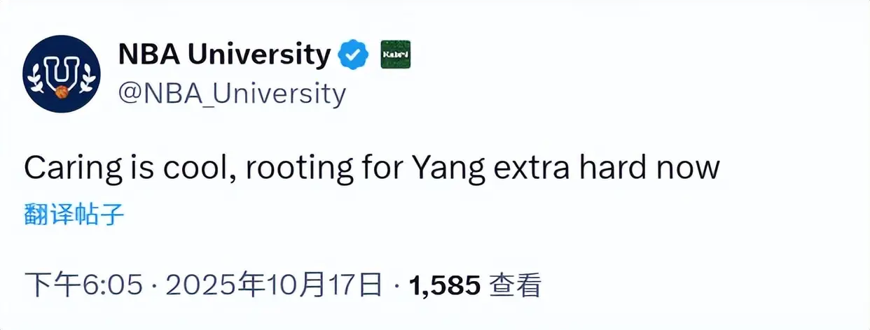 美媒NBA University则写道:“真诚关注本身就很酷,现在会格外用力为小杨加油。”
